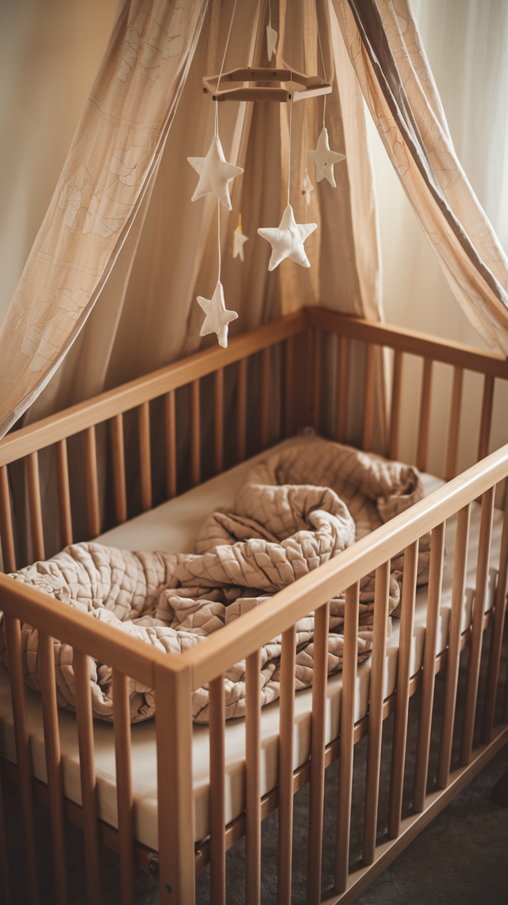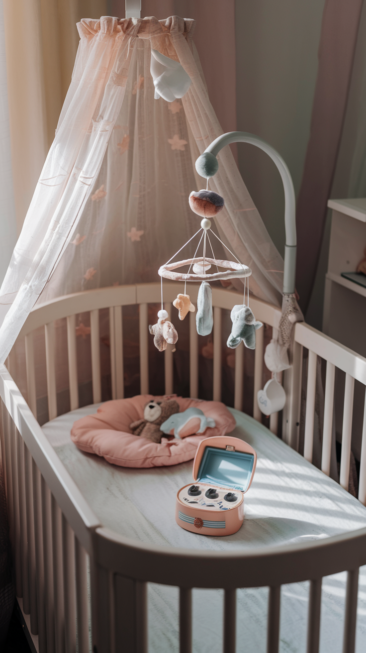 ✨ Tipp: Ein Mobile über der Wiege kann Babys beim Einschlafen helfen. Achte darauf, dass es nicht direkt über dem Kopf hängt.