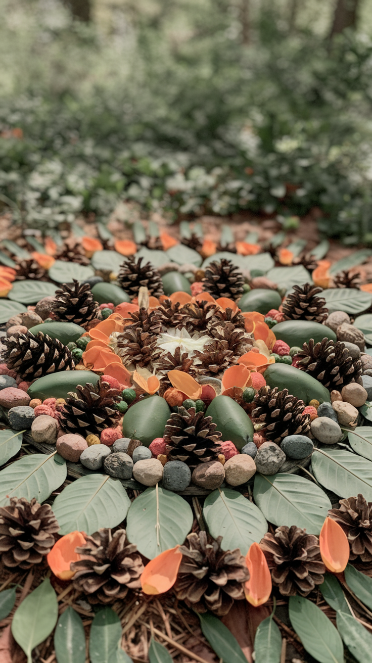 Mandalas bringen Ruhe, Struktur und Schönheit in den Tag. Sie fördern Konzentration und Achtsamkeit – besonders nach wilden Spielmomenten. Kinder spüren, wie sich innere Ruhe einstellt, wenn sie Steine, Blätter oder Blüten in harmonischen Formen anordnen.