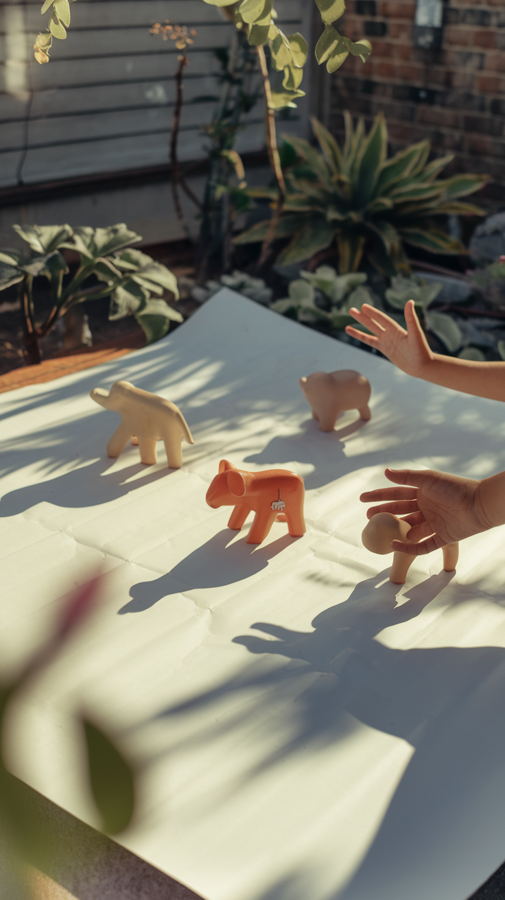 - Stellt Figuren, Spielsachen oder eure Hände so, dass sie Schatten werfen.