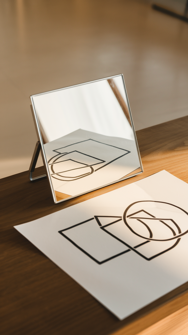 - Zeichne halbe Figuren oder Muster und lass sie sich im Spiegel „vervollständigen“.