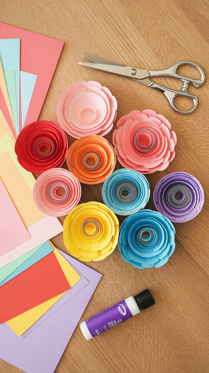 Bunte Papierblumen sind der Klassiker – leicht zu basteln und immer ein Hingucker. Kinder können hier Farben mischen und Schichten gestalten.