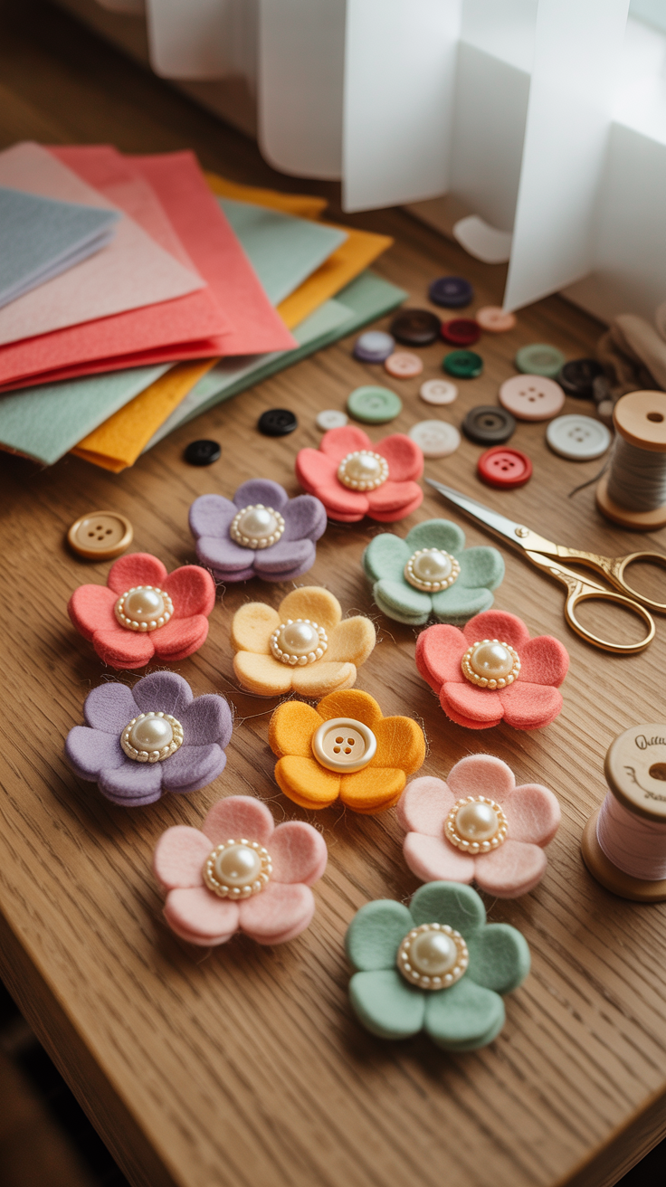 🧺 Materialien: Filz in bunten Farben, Knöpfe, Bastelkleber oder Nadel & Faden, Holzstäbchen