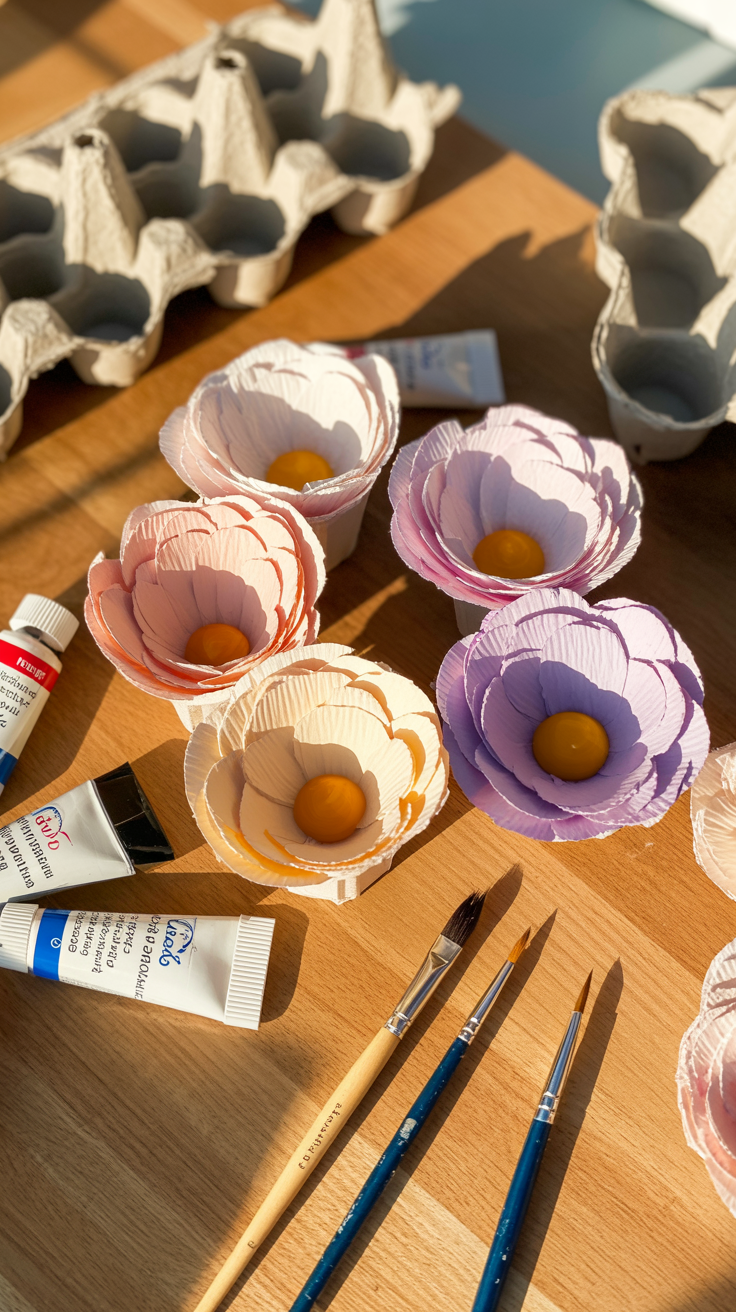 Nachhaltig und kreativ – aus alten Eierkartons entstehen wunderschöne Blüten mit 3D-Effekt.