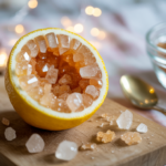 Aus einer ganz normalen Zitrone kann ein kleines Wunder entstehen. Was zunächst wie eine einfache Fruchthälfte aussieht, verwandelt sich über Nacht in eine funkelnde, essbare Geode.