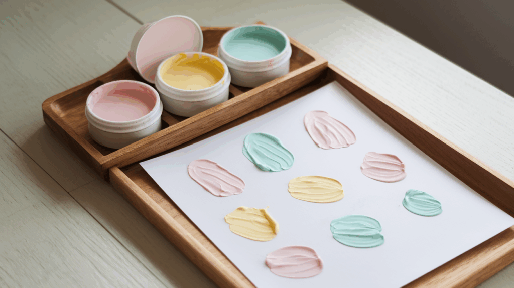 Dieses Grundrezept liefert eine cremige, sanfte DIY-Farbe, die ideal für kreative Bastelideen und sensorisches Spielen ist.