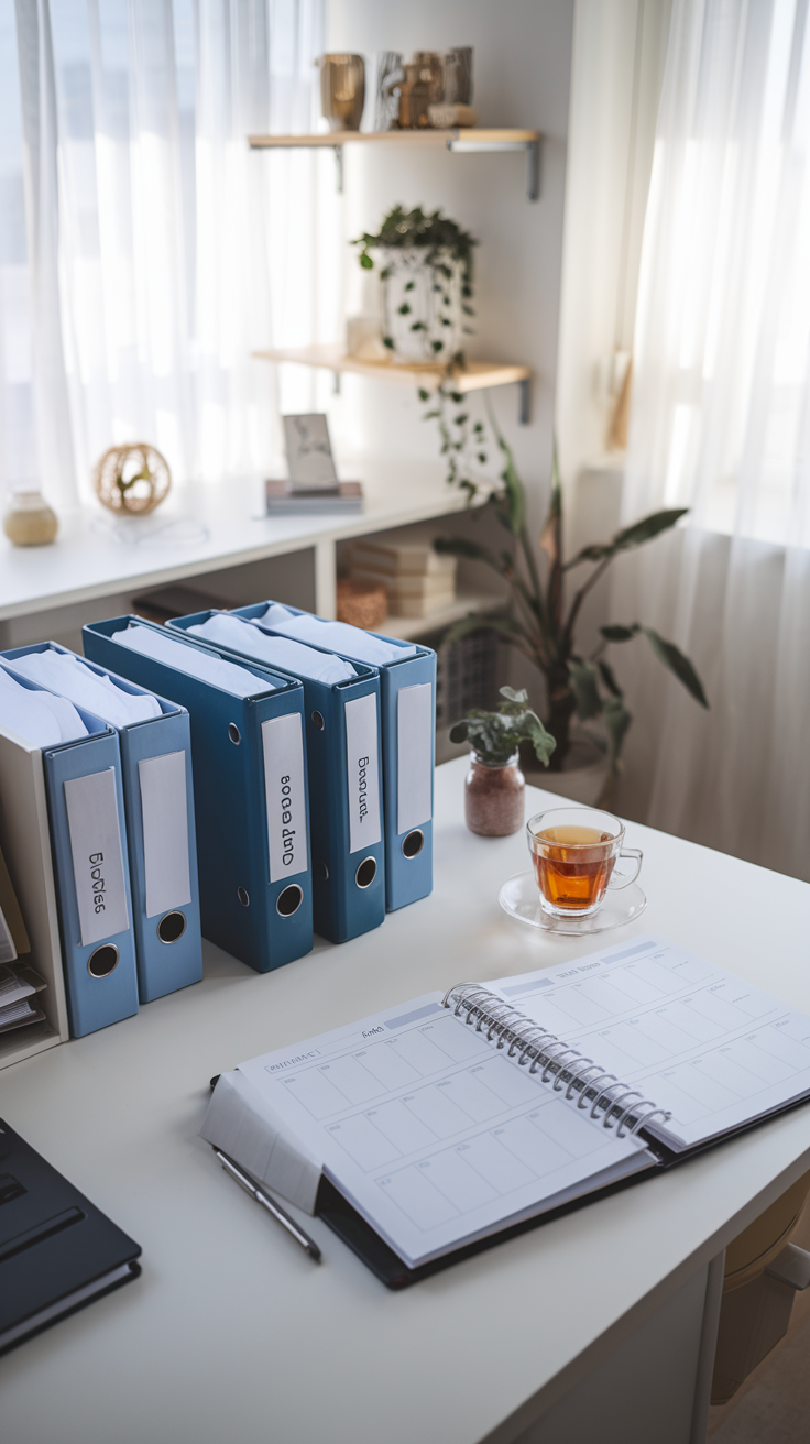 Lege wichtige Unterlagen sauber ab. Versicherungen, Verträge, Lohnabrechnungen, Geburtsurkunden. Am besten in einem festen Ordner oder digital sortiert. So hast du im Ernstfall sofort alles zur Hand und sparst viel Stress.
