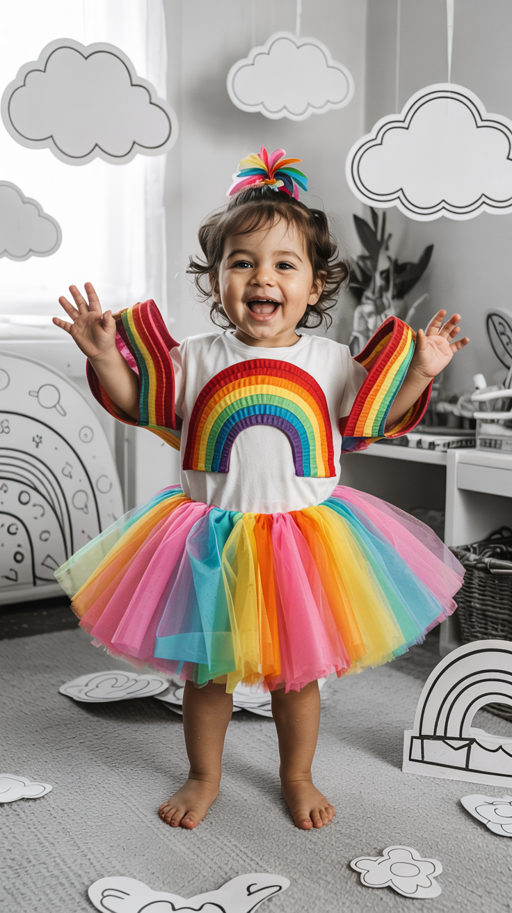 ✨ Extra-Idee: Ein weißes Cape mit aufgeklebten Filzwolken lässt dein Kind wie einen Regenbogenengel aussehen.