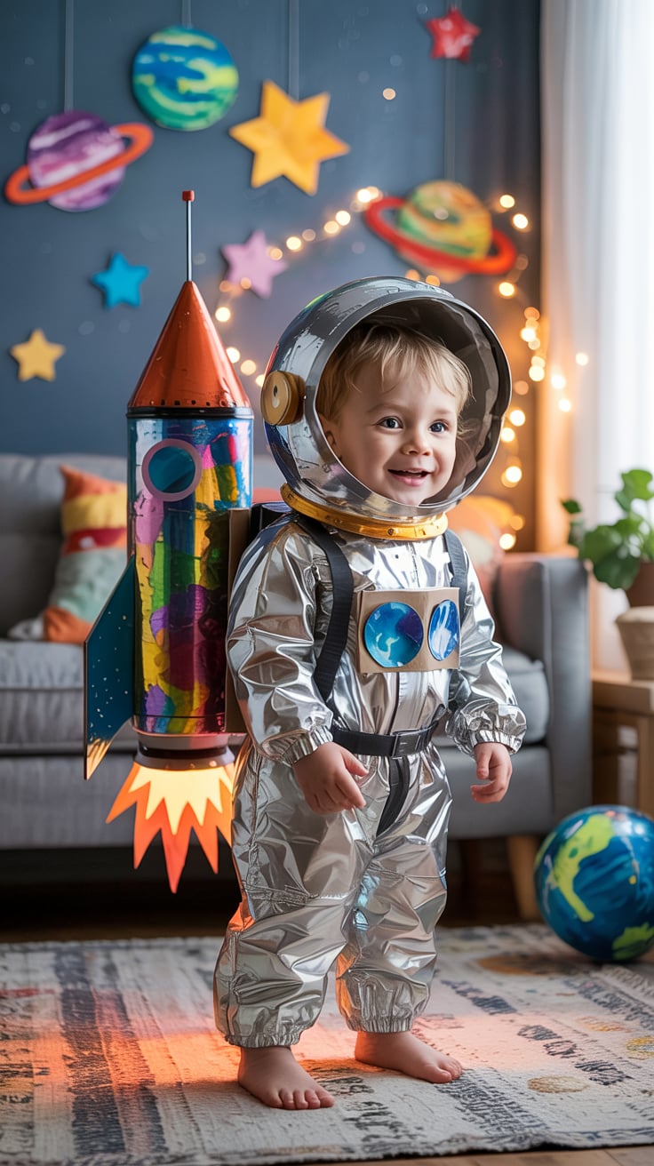 Für kleine Weltraumforscher ist dieses Kostüm der absolute Traum. Einfach umzusetzen, robust und bequem – perfekt für Kita, Schule oder Straßenumzug.