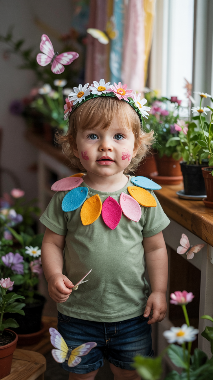 Dieses Kostüm ist pure Frühlingsfreude! Es lässt sich wunderbar aus Restmaterialien basteln und ist ein echter Hingucker. Ideal für Kindergartenfeste oder bunte Umzüge.
