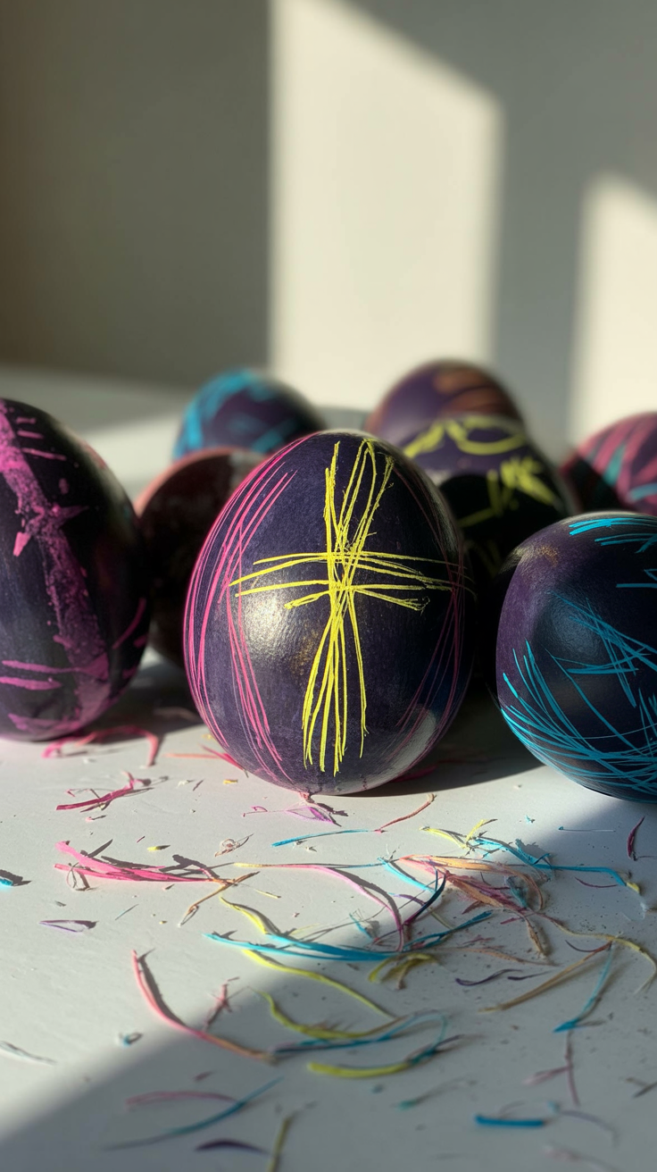 Ostereier basteln mit Kindern: Wachskreide-Kratz-Eier