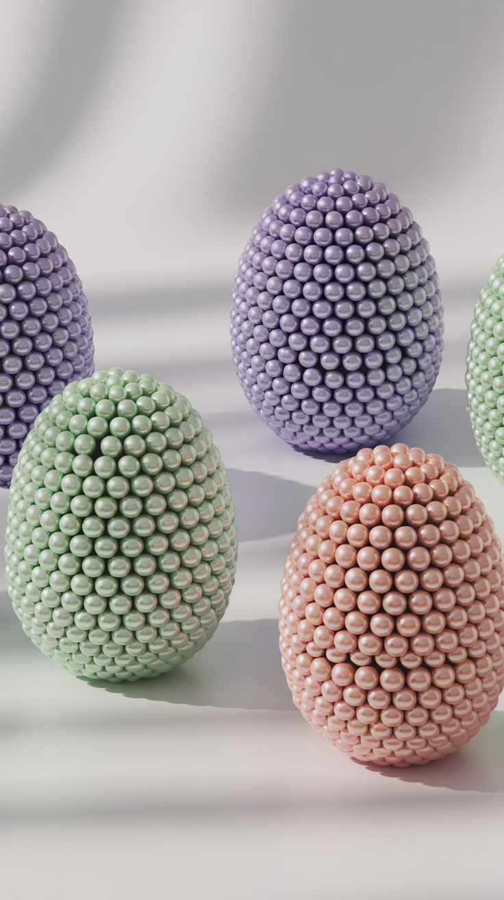 Bunte Perlen kleben Kinder in Mosaikform um Eier. So entstehen glitzernde Oberflächen. Diese Idee schult Augen-Hand-Koordination und erfordert Geduld beim Platzieren der Perlen.