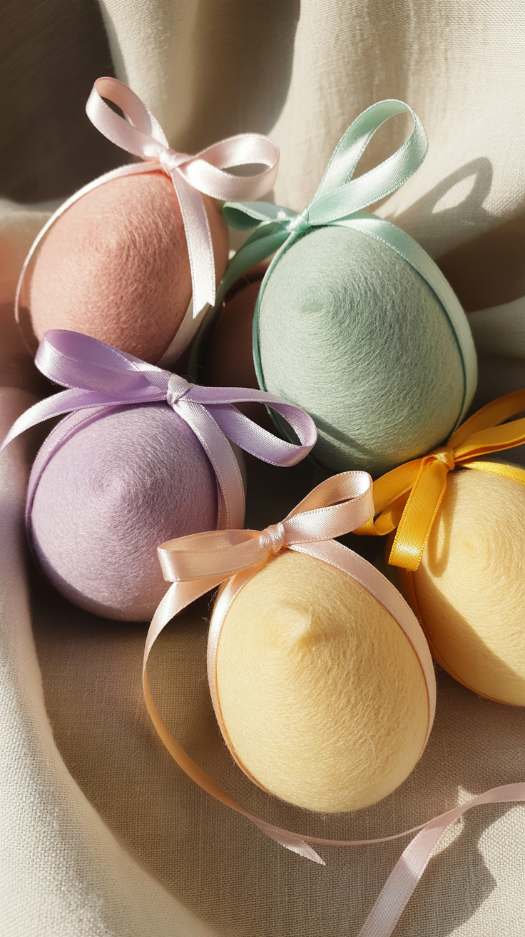 Bunte Wollfäden umschlingen Eier mit Gefühl. Kinder wickeln Fäden straff und dekorativ. Sie kombinieren Farben und Stärken für interessante Effekte.
