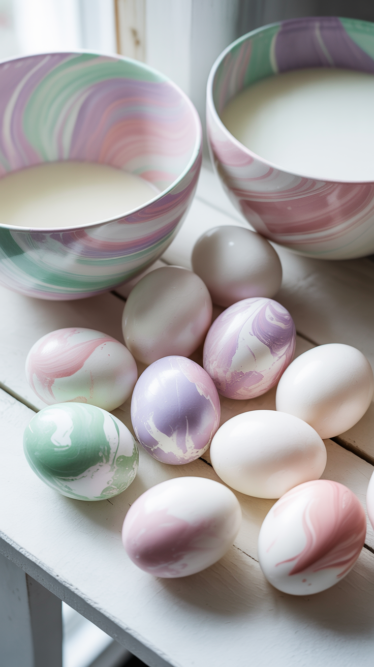 Ostereier basteln mit Kindern: Marmorierte Eier mit Milch