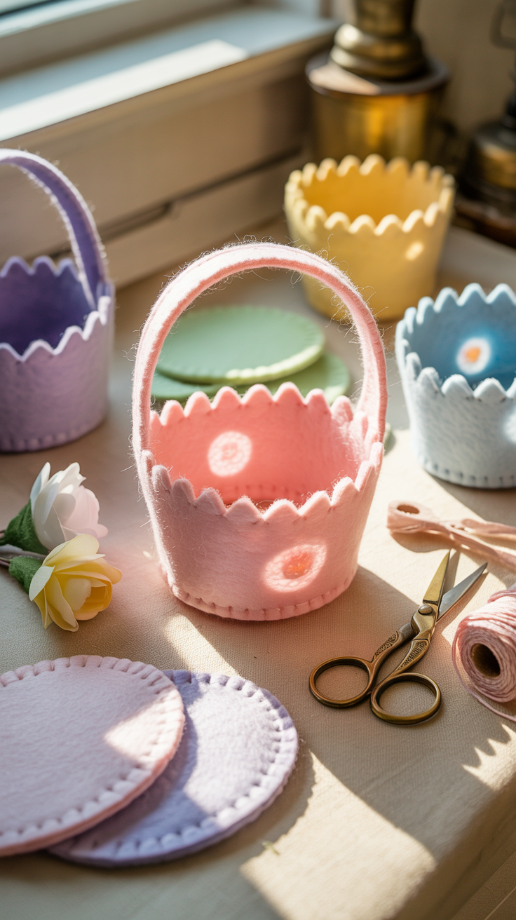 Ein Filzkörbchen fühlt sich weich an, sieht hochwertig aus und ist besonders langlebig. Kinder lieben es, den weichen Stoff zu schneiden und zu verzieren. Filz ist außerdem robust genug, um kleine Ostergeschenke sicher zu tragen.