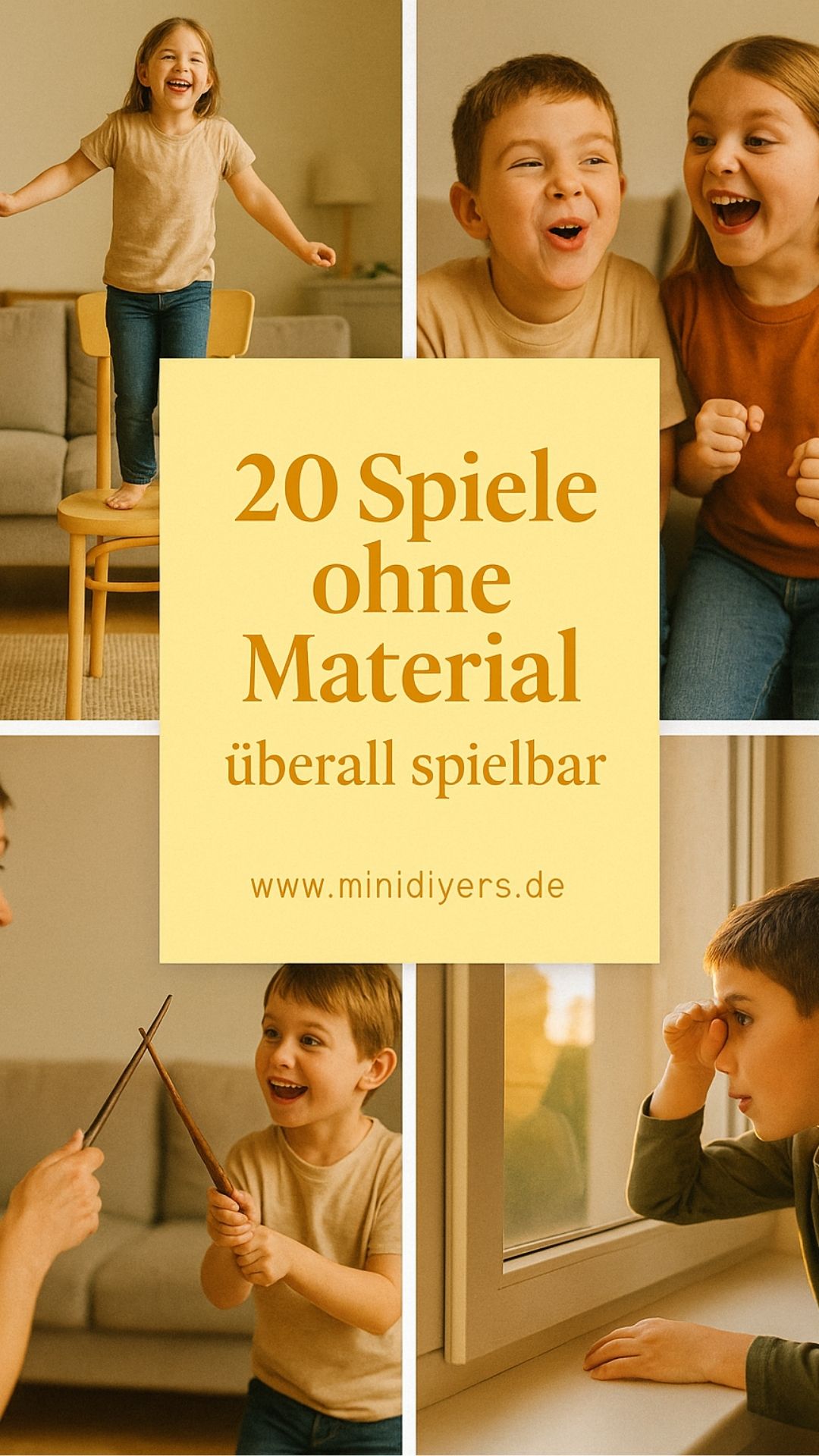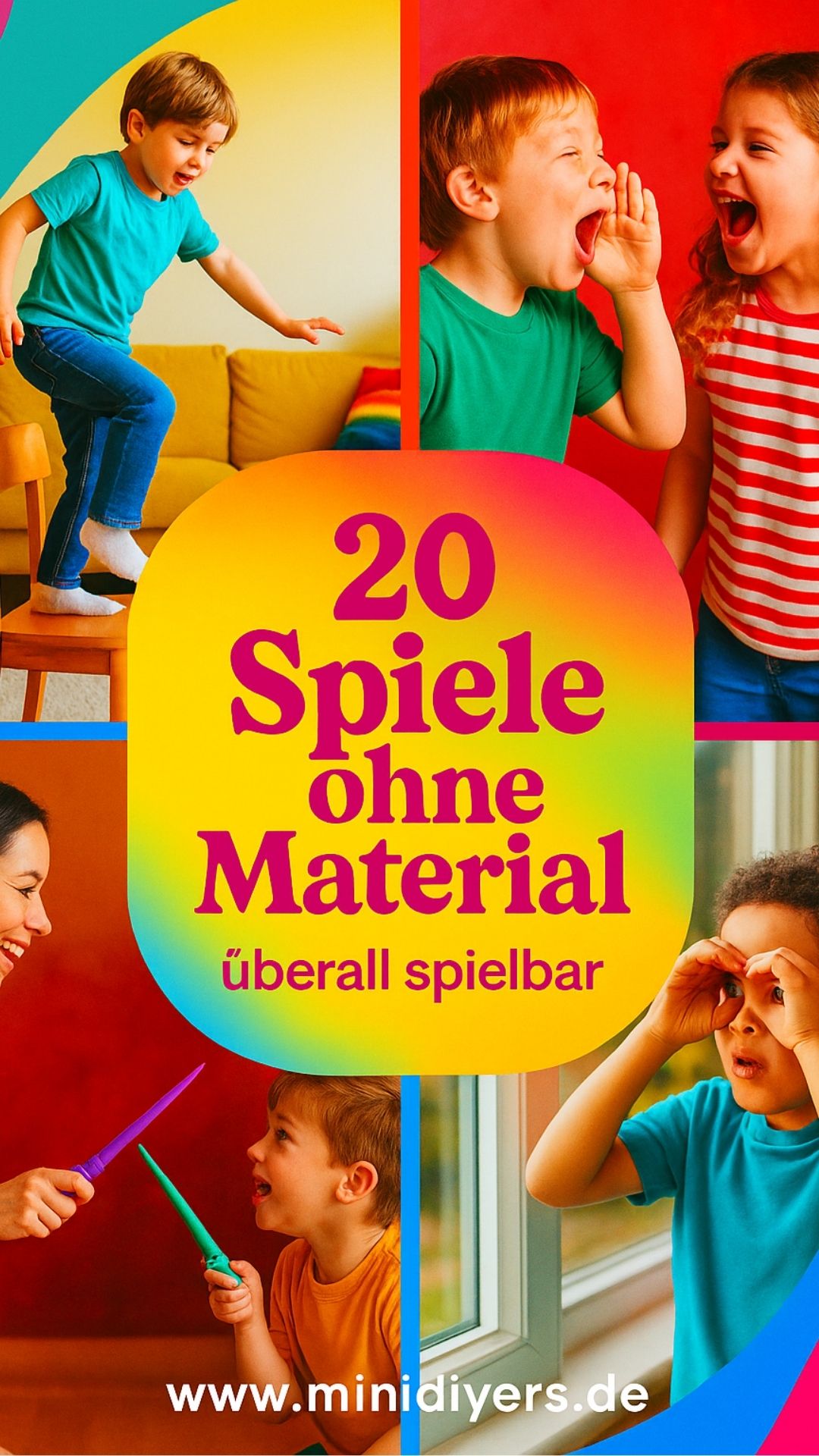 Diese Spiele ohne Material sind meine Alltagsretter! Sie machen Spaß, sind flexibel und fördern Kreativität, Bewegung und Nähe. Perfekt für Wartezeiten, Regentage oder kleine Energieausbrüche zwischendurch.