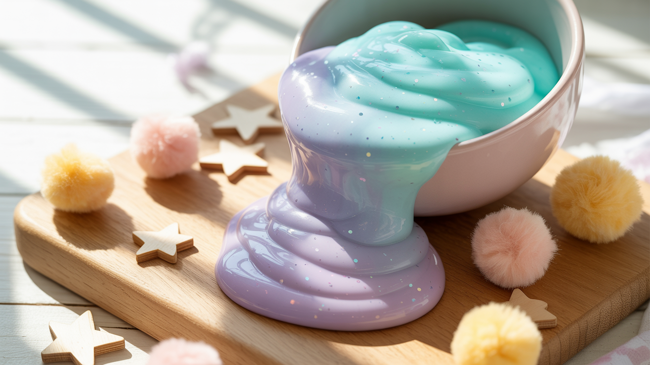- Babyöl oder flüssige Stärke hinzufügen – das macht die Masse flüssiger